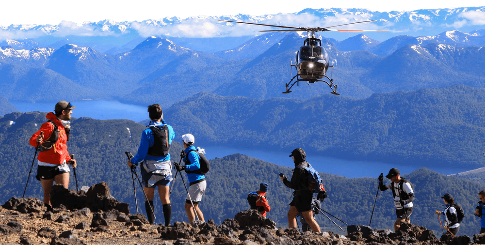 The labor de los rescatistas en el helicóptero y su presencia en el recorrido es un ícono de la carrera y una de la fotos más buscadas por los corredores.